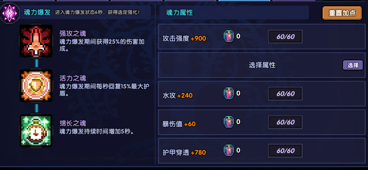 魂树优先点满暴击值护穿(中低练很缺暴击值和护穿),其次不需要点首伤,然后属攻爆伤看情况(爆伤:属攻=1:5)。不带壁垒之魂,会影响暴君。