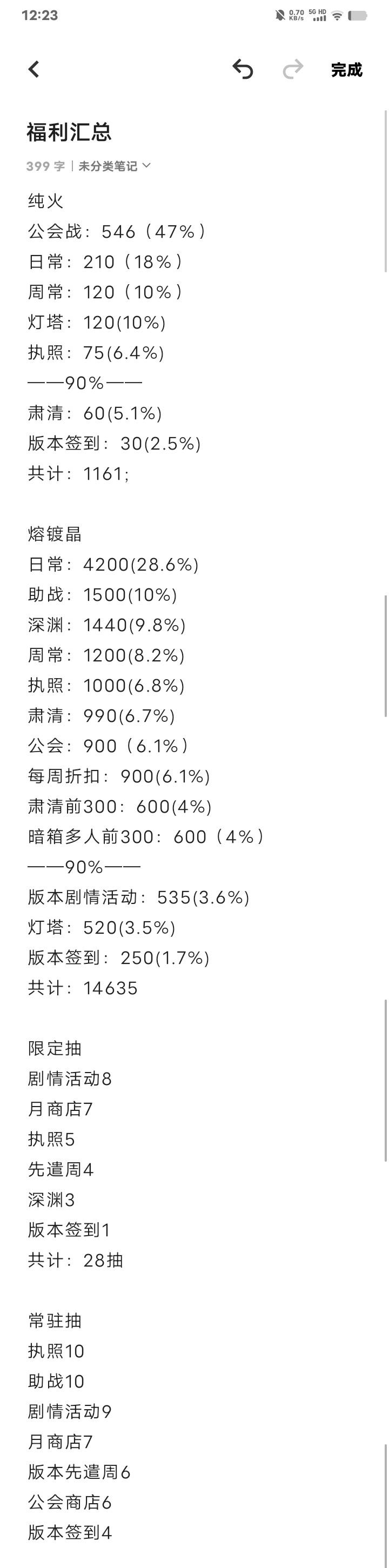 更新:细则按百分比优化了排序,深渊计入三周一刷(即一个版本两次结算);
