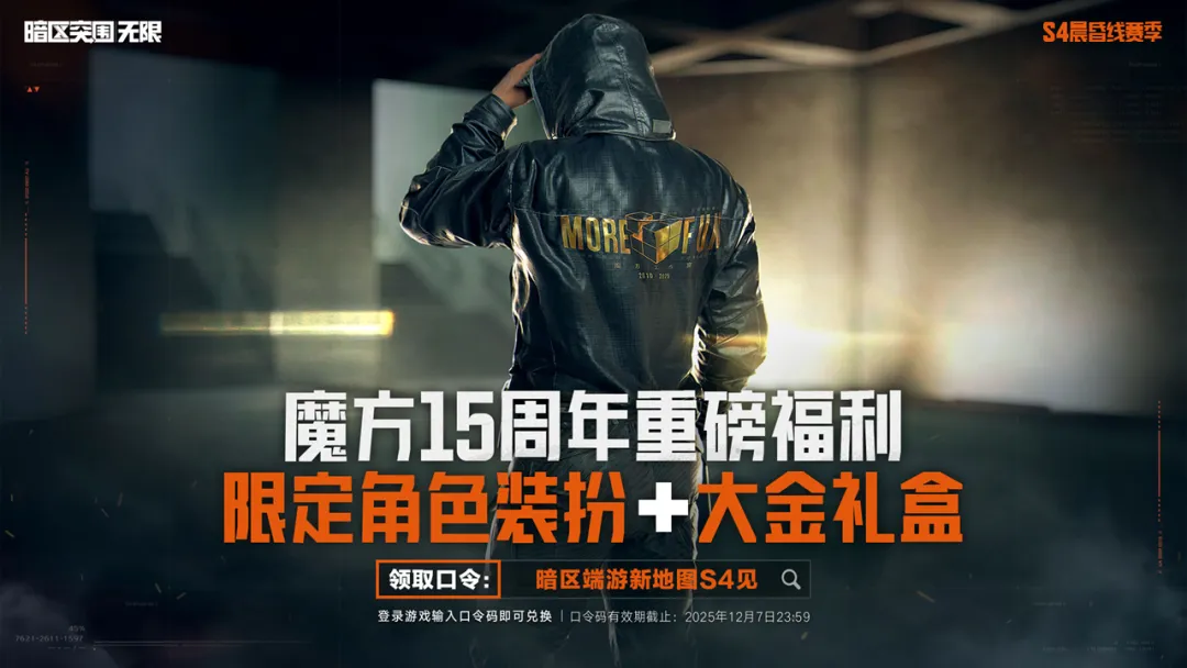 口令码二:暗区端游新地图S4见,可兑换魔方15周年庆限定角色装扮