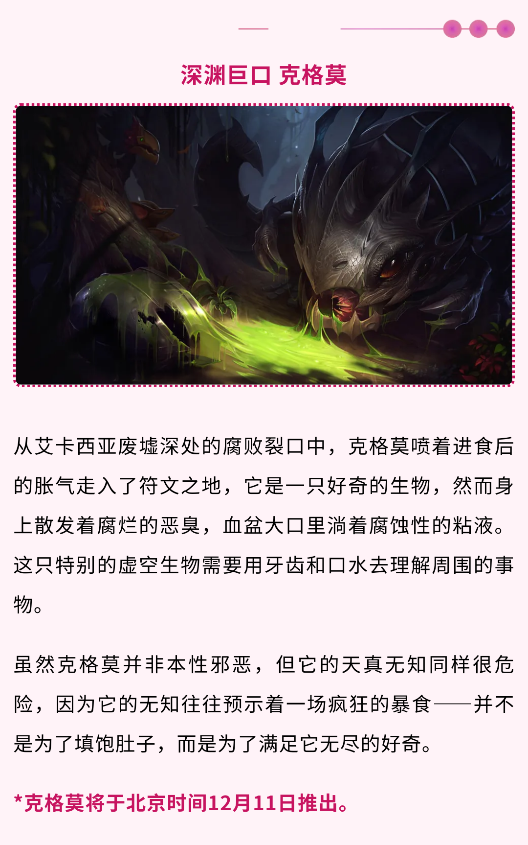 本次版本更新,我们对全地图进行了一些平衡性调整。另外,克格莫也将正式上线!这位有史以来最可爱,但同时又有点危险的英雄终于登陆峡谷啦!幻灵科技系列皮肤也迎来了全新成员。欢迎来到6.3e版本!