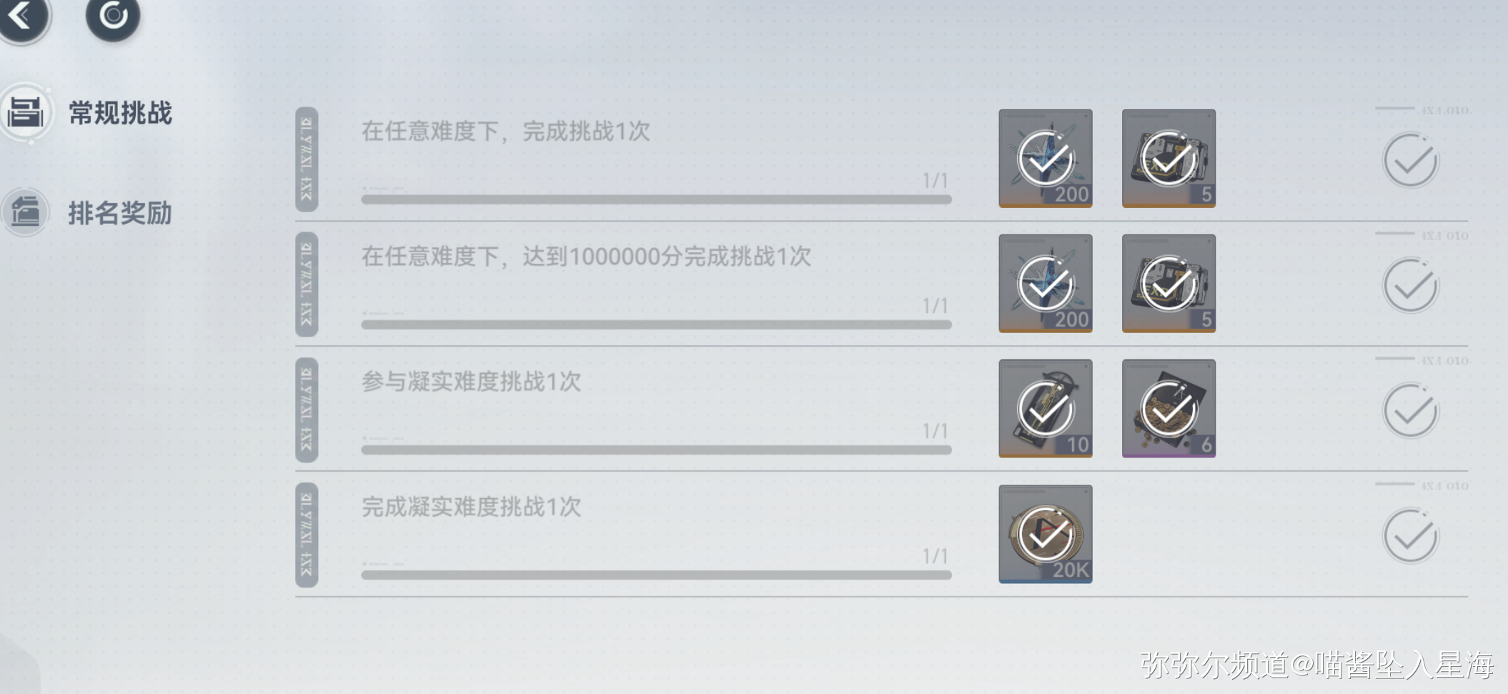 最快领完奖励的方式:先挑战一次残余虚影(低难度),随后进入一次凝实虚影(高难度),进入后即可从右上角退出并结算分数,便可领取全部奖励。