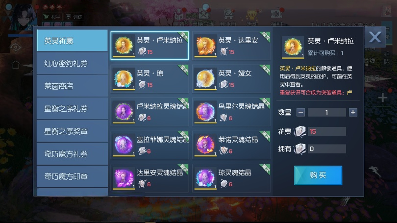 12月4日更新后至1月1日更新前,参与英灵祈愿活动可获得卢米纳拉灵魂碎片、乌里尔灵魂碎片、返场环影·拾星落银、返场时装·星月夜·衣、返场发型·星月夜·发、返场头饰·星月夜·头饰、返场背饰·星时涟漪、返场头饰·羽恋携心、返场背饰·双焰之翼、返场头饰·飞毯奇缘、手办·凯撒-水天、手办·零-水天、手办·路明非-水天、手办·绘梨衣-暮歌、繁荫之信、丰盈之瓶、萌光沙漏、以及英灵礼物、智慧初源、11级圣核兑换券等各种超值道具!