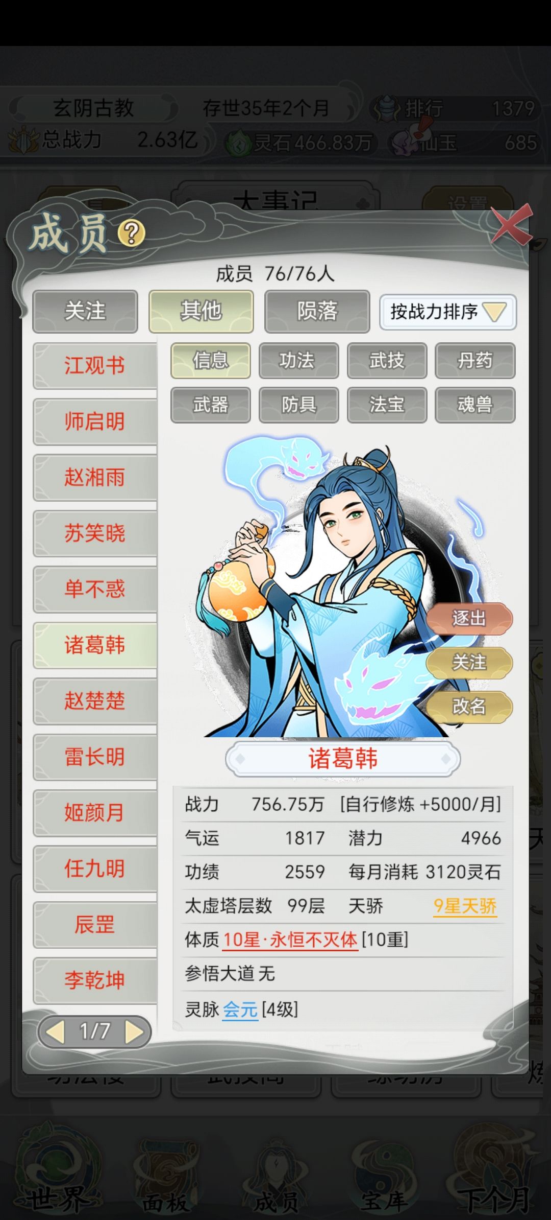 一、首先是招收弟子,这个反复刷新看运气出吧,运气好能出逆天资质。