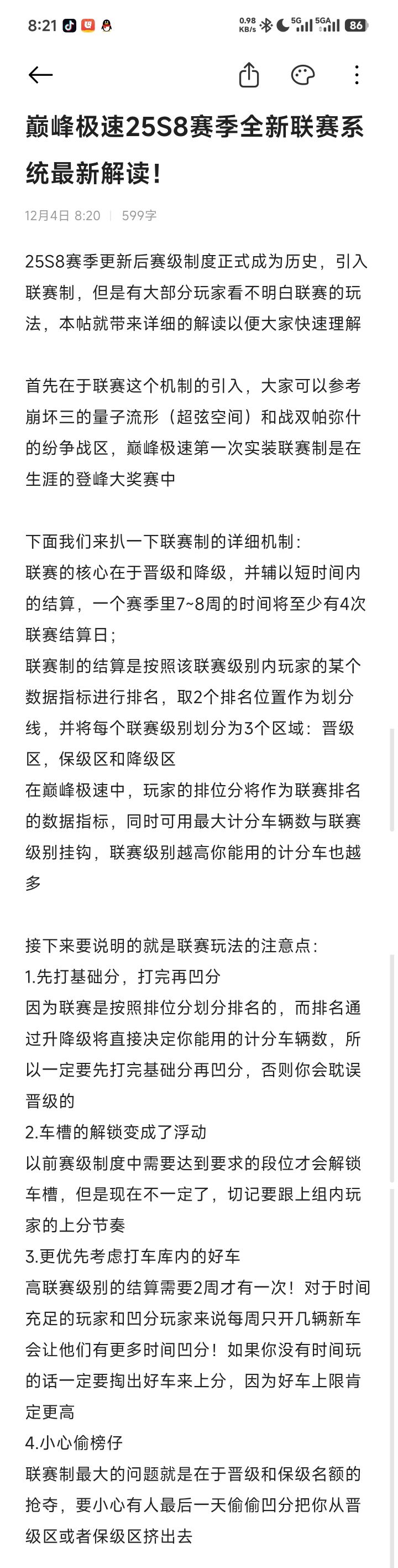 巅峰极速新联赛系统机制与注意点详解