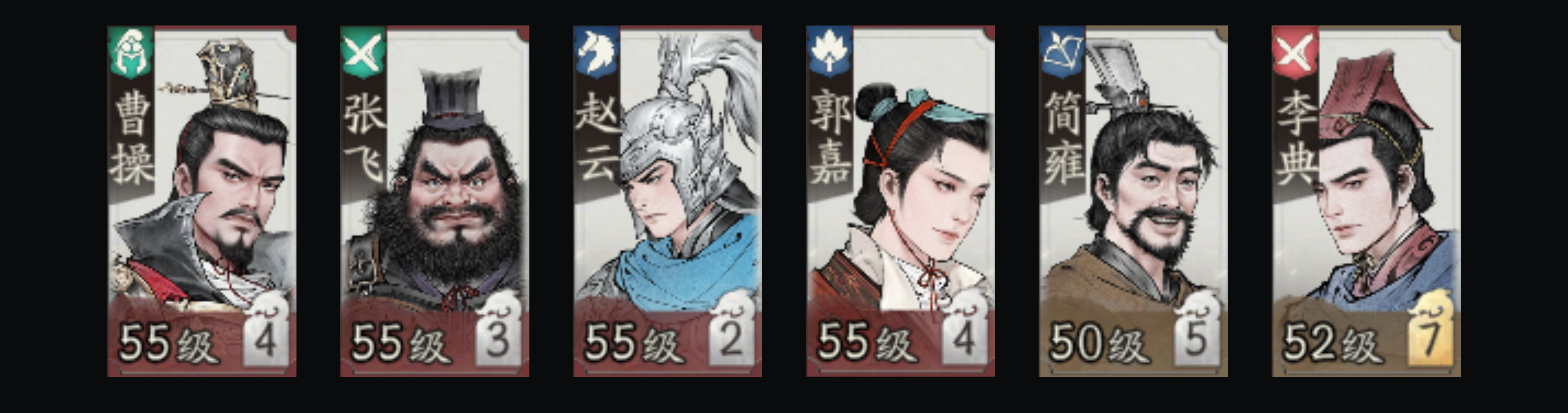 曹操、张飞、赵云、郭嘉、简雍、李典