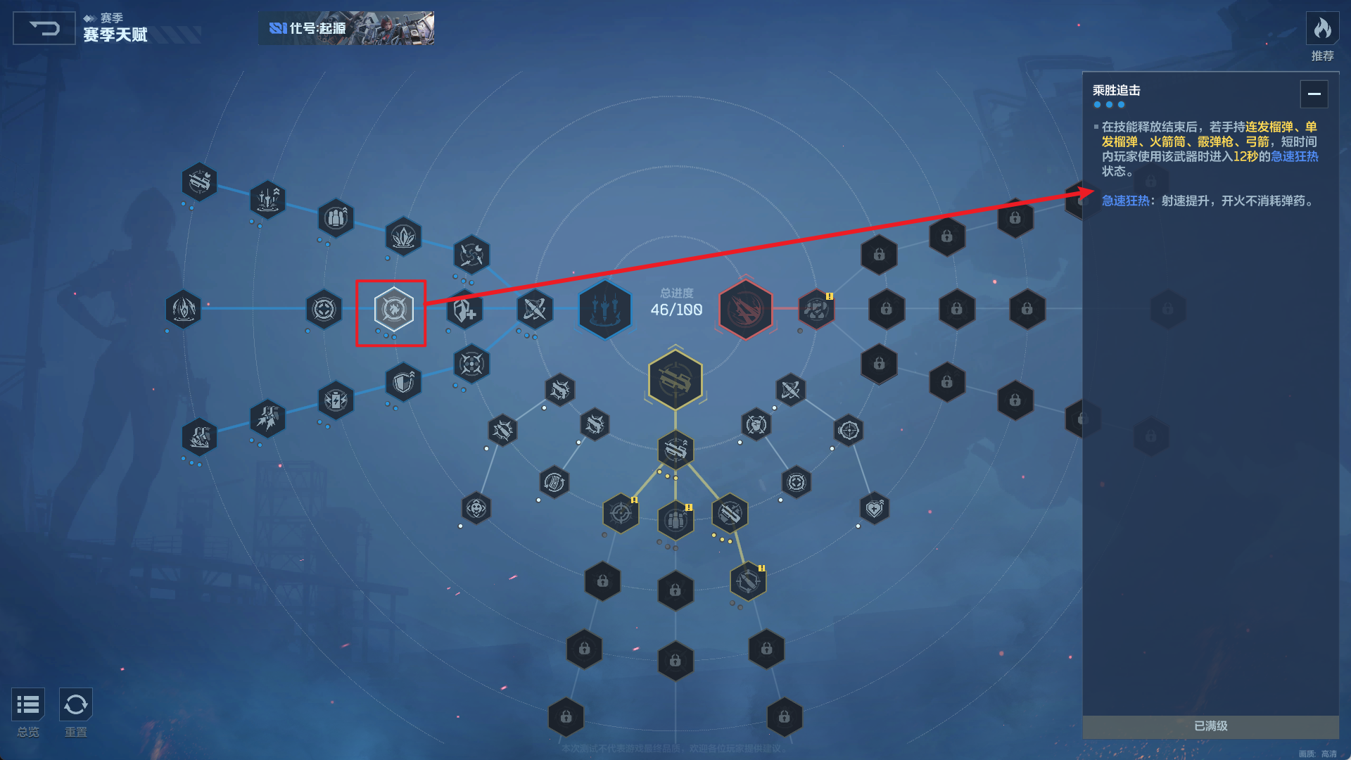 在开启乘胜追击效果后,可点通用天赋中近距离增幅效果的,如近距伤害,暴击强化、爆伤强化等。