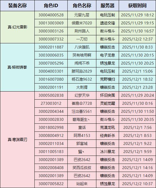 更多装备获取信息如下(截至时间:12月2日18:00)
