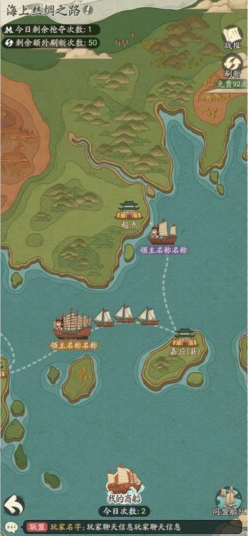 在海图中,族长可消耗免费刷新次数或消耗玉璧,探索发现其他商船。