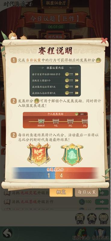 活动期间每日将开放不同议题,符合资格的族长可通过完成对应任务获取发展积分。