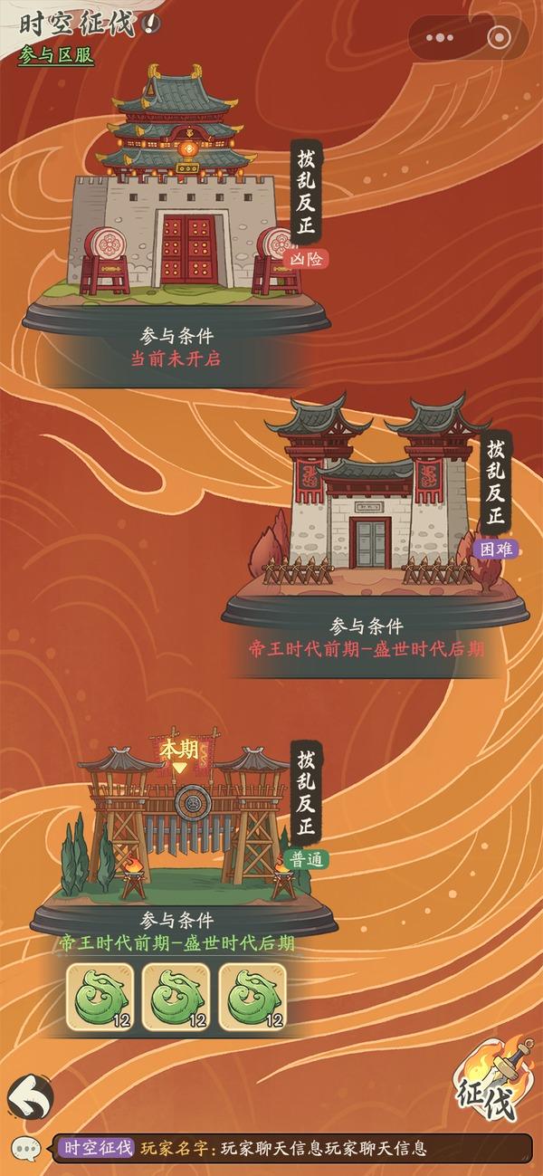 每周一10点,系统会根据族长所处时代自动匹配对应难度;