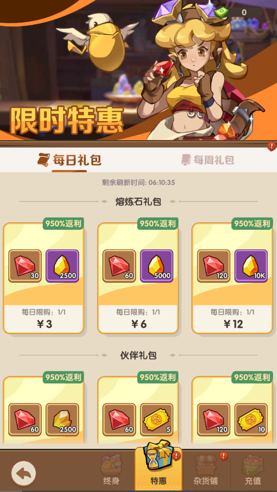 1.优化每日商店和每周商店的礼包数量和礼包配置,可通过商店-特惠进行查看购买;