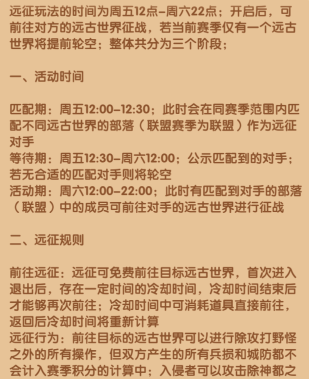 1.由于部落对决周六比拼和跨界远征是在同一天,各位玩家可以利用跨界远征的机会来做部落对决!需要注意的是:远征玩法是不增加联盟内的积分的。