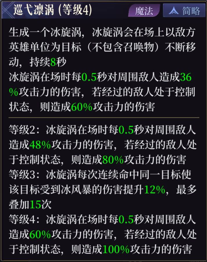 斯卡蒂主要靠大招打输出,大招对被控制的单位有伤害加成效果。