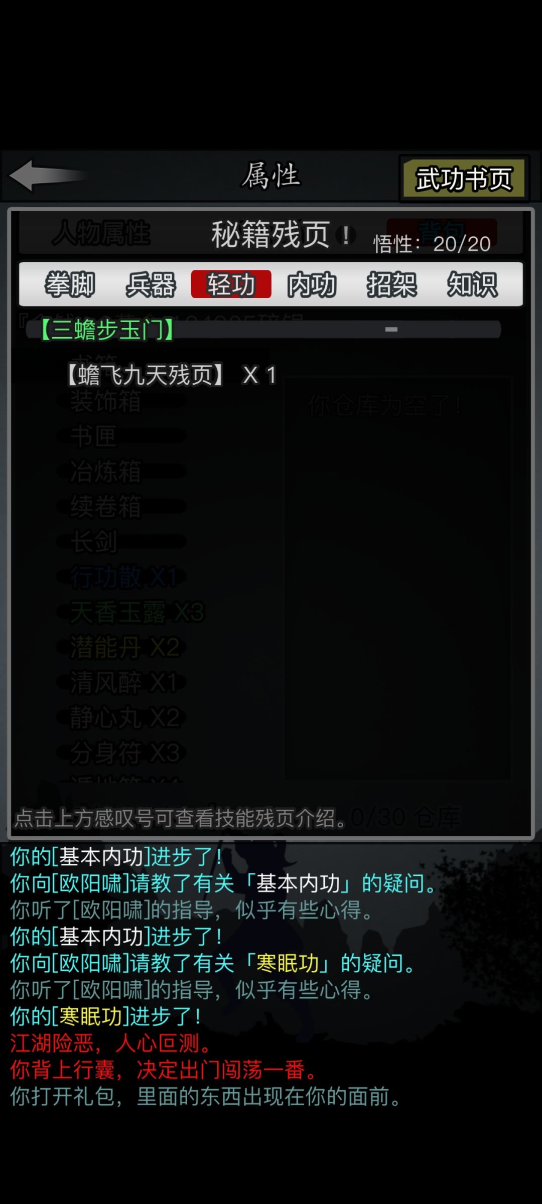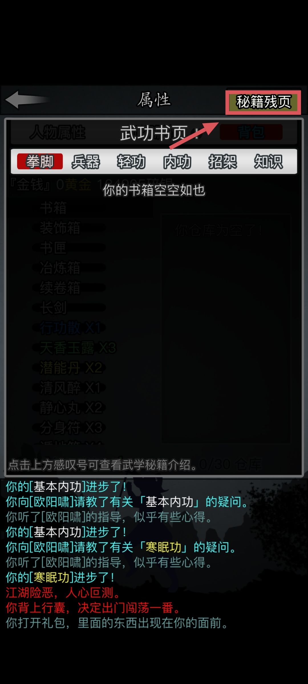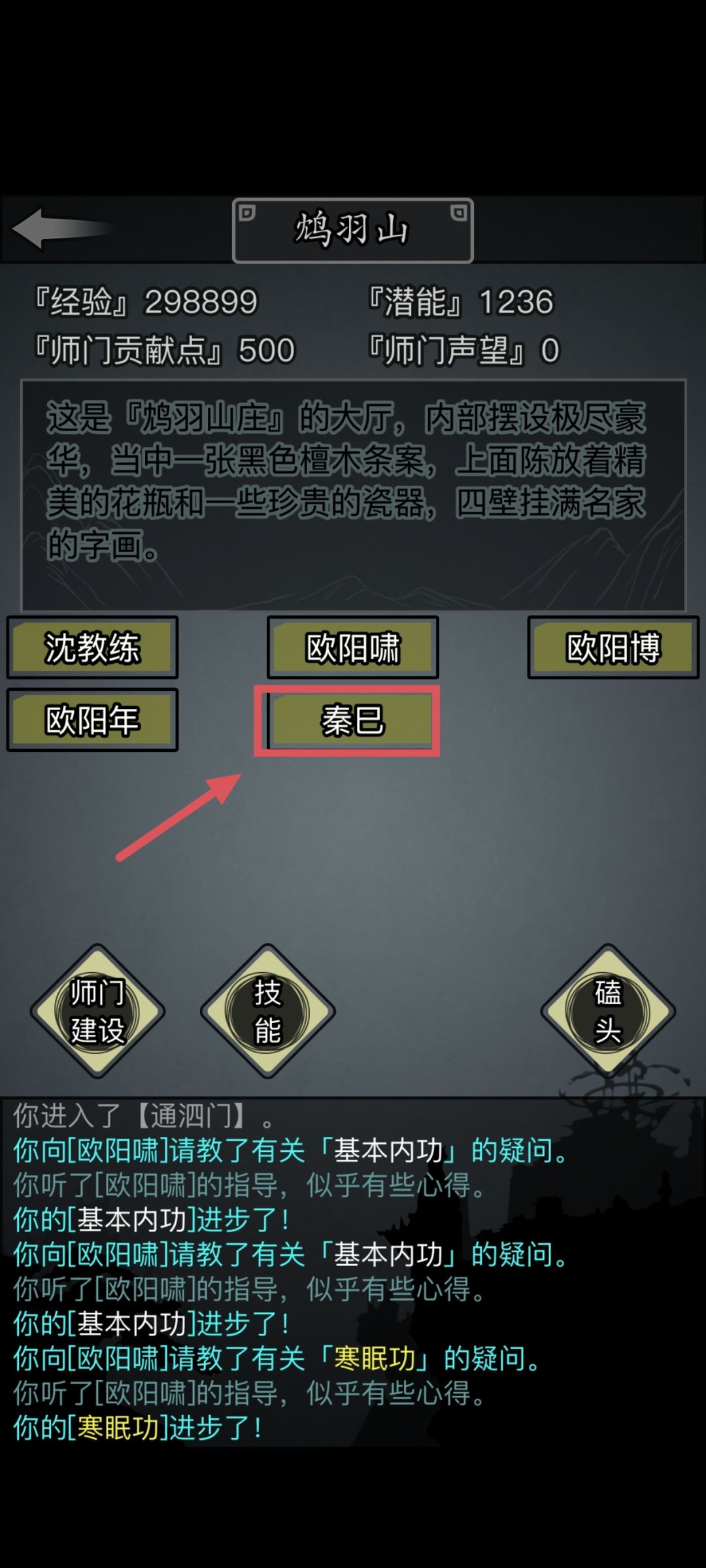 2、每天请安一次获取师门贡献,可在门派最后一个npc处购买残页(某些技能需要特定数量的残页才能开启)