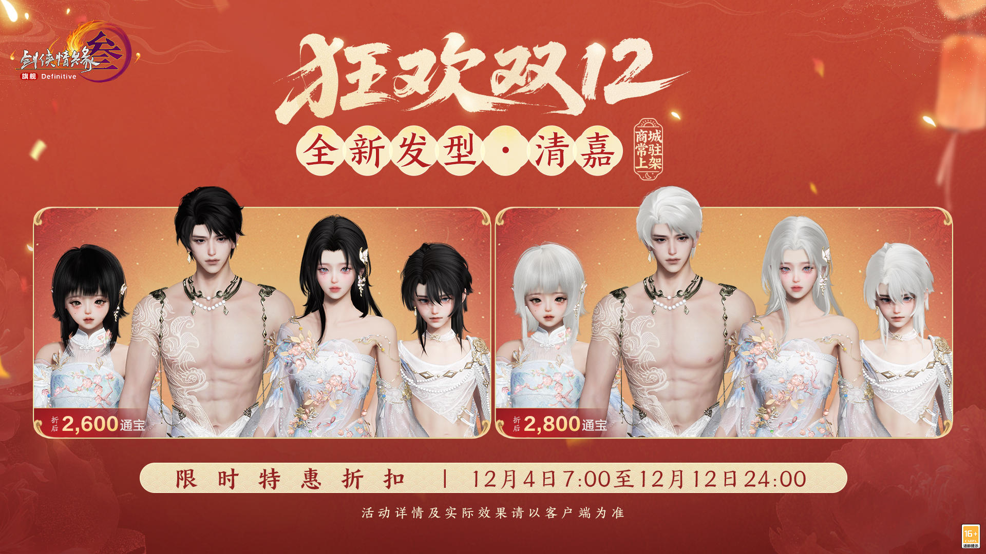 签到即送黑色染发道具 《剑网3》双12系列新品现已登场