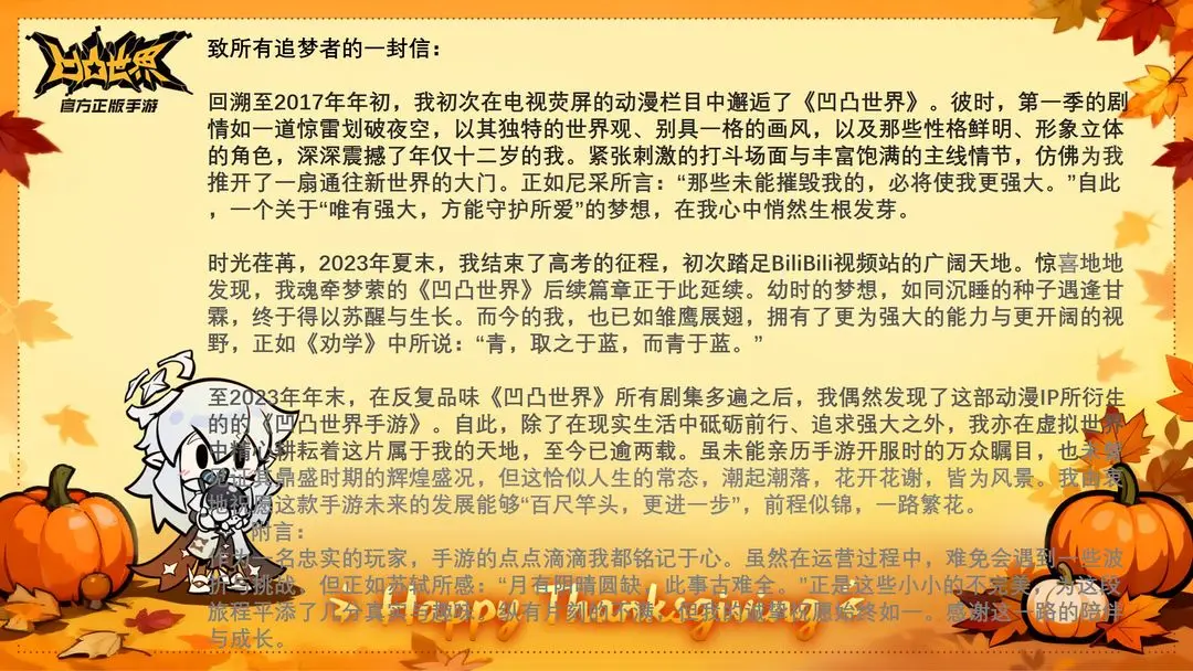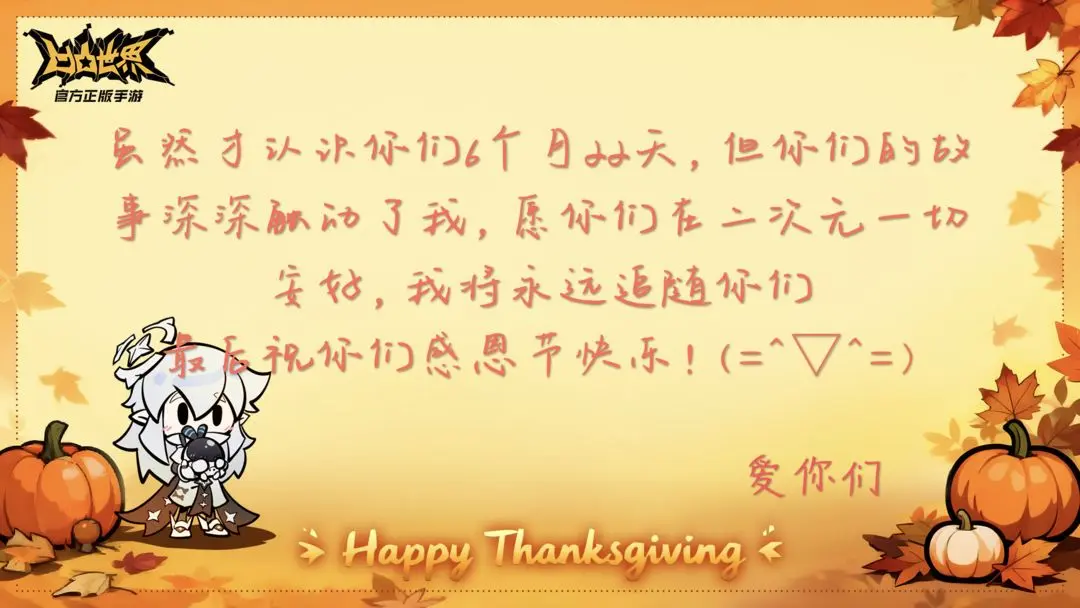 在这里我们将部分优秀投稿进行展示,球球想郑重地说一句:谢谢每一位天使的精彩创作,是你们让这个感恩节充满了专属我们的温暖✨
