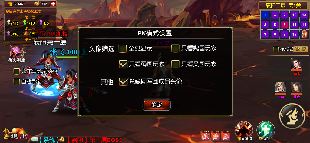 3、当玩家位于【天子兵库】第一层时,无法勾选PK模式。