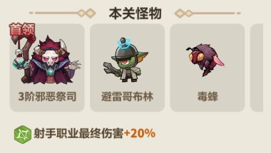 本次关卡,飞行怪物较多,较为克制战士,铁头哥布林和避雷哥布林也很多,较为克制法师,幽灵克制毒系。