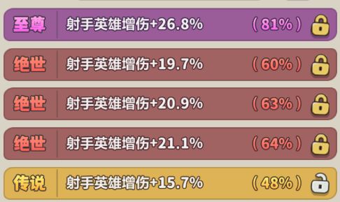 注意:主线关卡增伤同样对国王生效,相比射手英雄披风词条更好用。如果没有主线关卡增伤,也可以携带单独射手增伤。