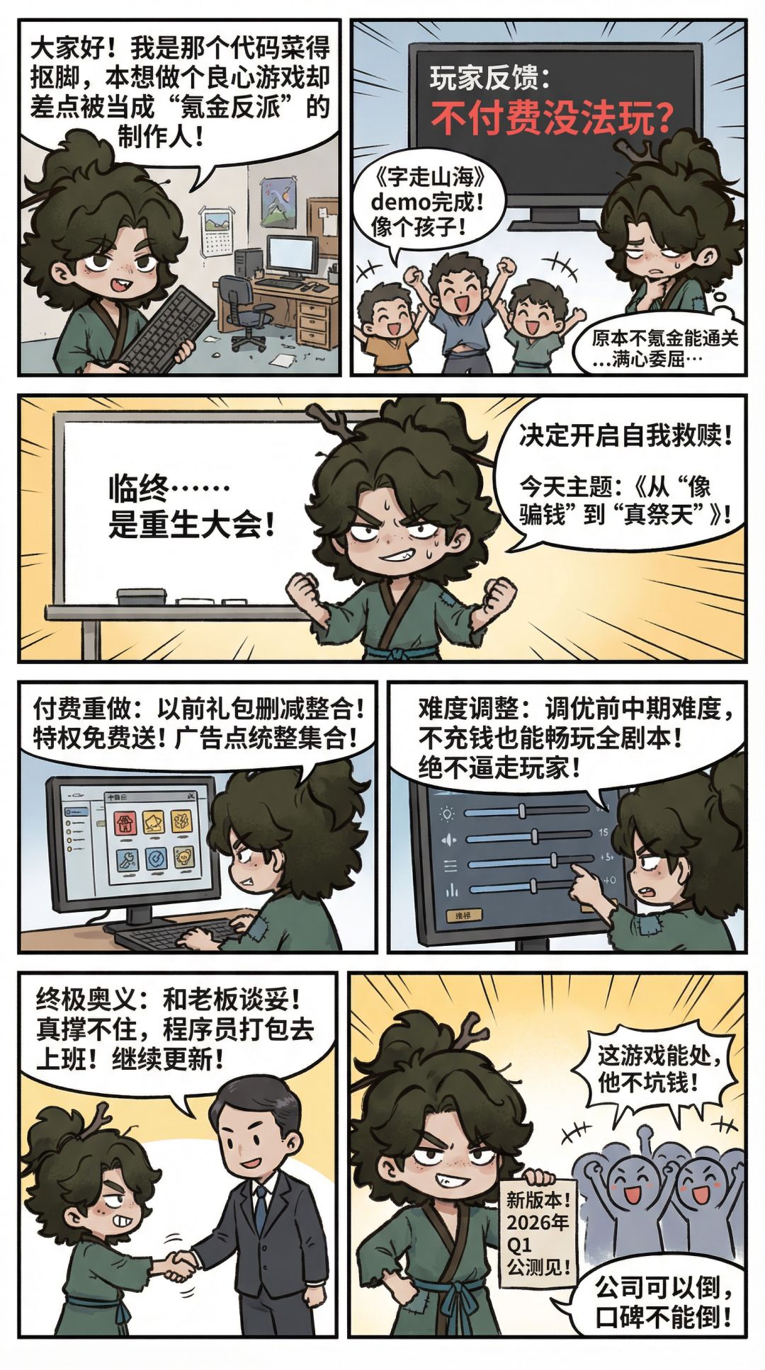 新版本,我相信,玩家会愿意为我们发声:“这游戏能处,他不坑钱!”公司可以倒,口碑不能倒!我们2026年Q1公测见!