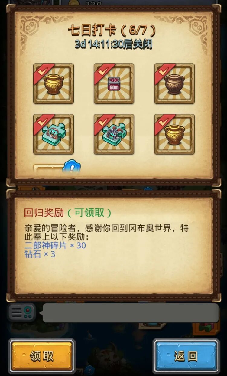 回归玩家即可通过签到领取二郎神+贵族