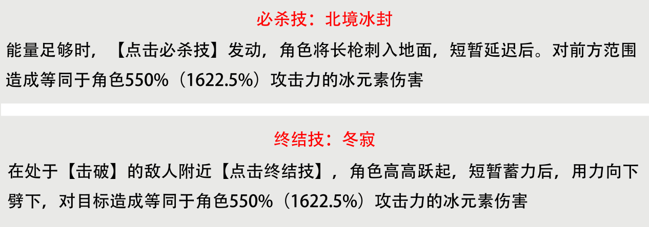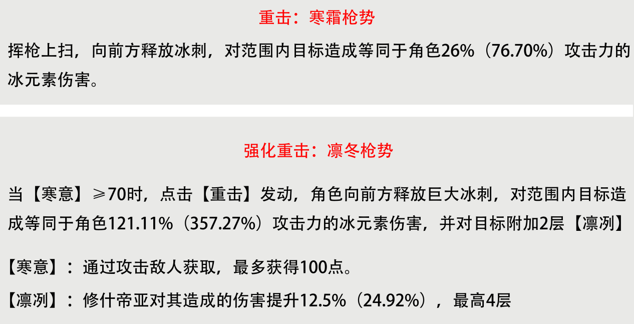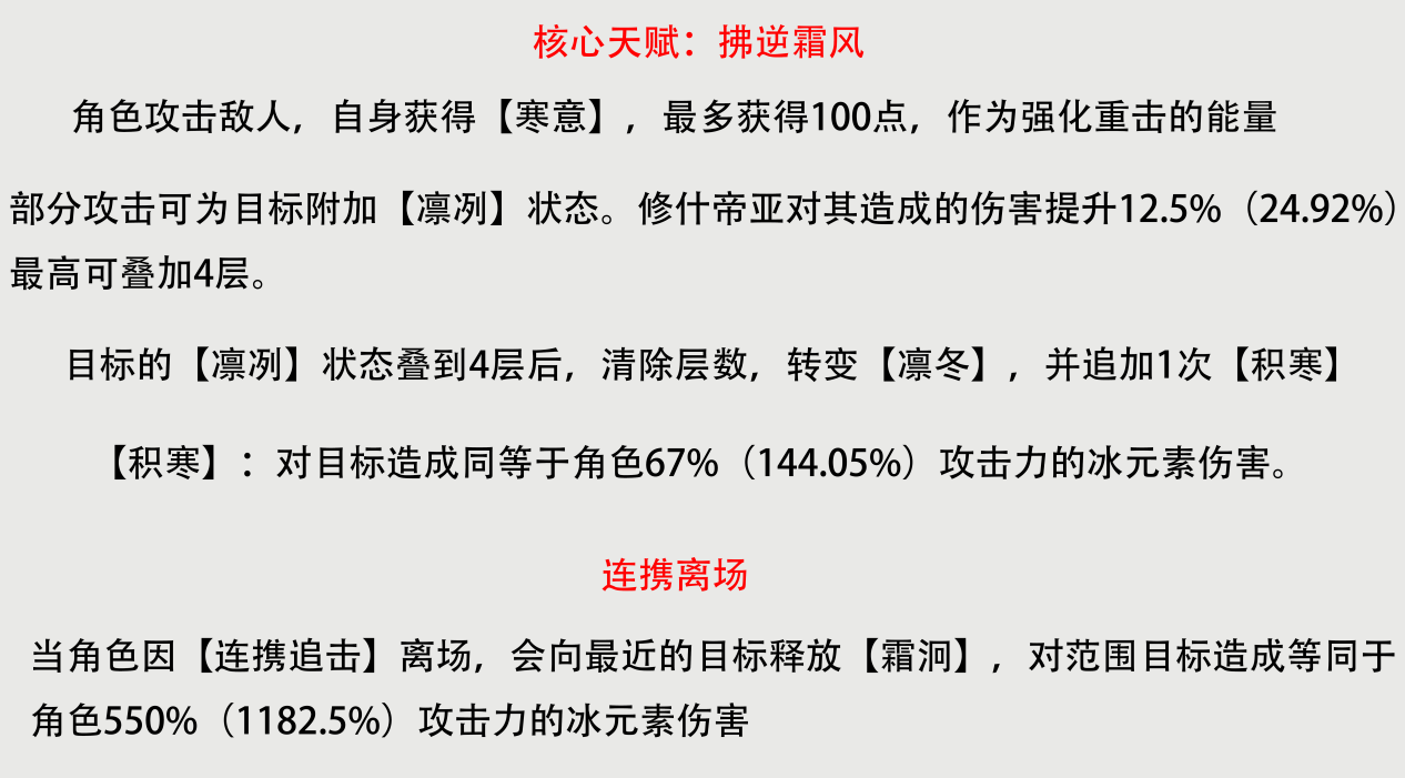 在四阶之前【凛冬】状态一直没有用处摆设,解锁四阶后,【普攻派生】伤害提升,也就是只要通过三阶进阶被动以及【强化重击】快速叠【凛冽】就可以获得一次【普攻派生】的提升。