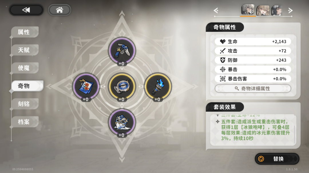 这个原本都不想说,毕竟策划给奇物挂的属性挺随意的,我冰套要么是火元素要么就是生命,我想升级都嫌浪费资源,然后是元素伤害可能是没有加成,很虚,可能只能吃到攻击力。