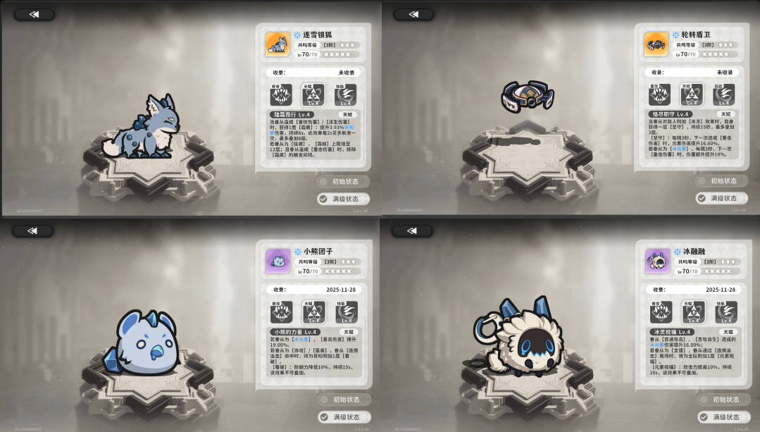 然后是五星使魔【冰融融】别看这位的下面天赋只给【支援】才能全队【元素祝福】这个你可以不吃,就吃【普攻】【普攻派生】这两个加成就已经很好了。