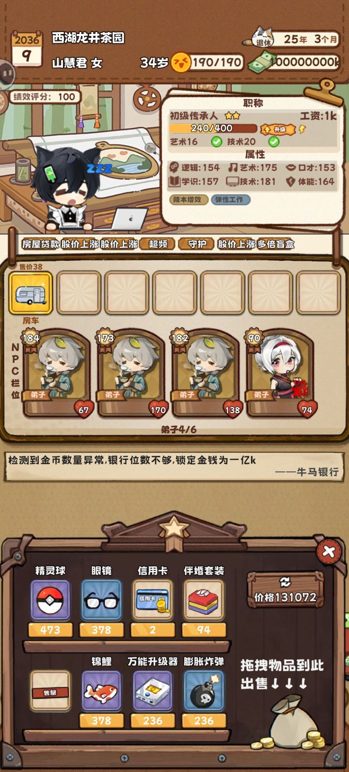 比如全买黄金,股票。金钱直接干成负数破产,也不知道怎么触发的,偶尔出现。可以设计个金钱95%购买股票黄金之类的快捷键。