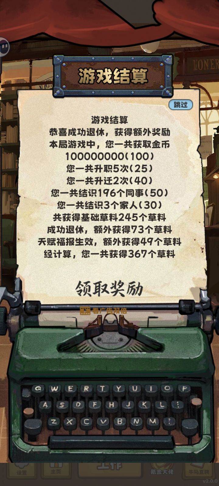 成功退休增加30%,放大镜一个满级30%,不知道能不能叠加,局外天赋40%。