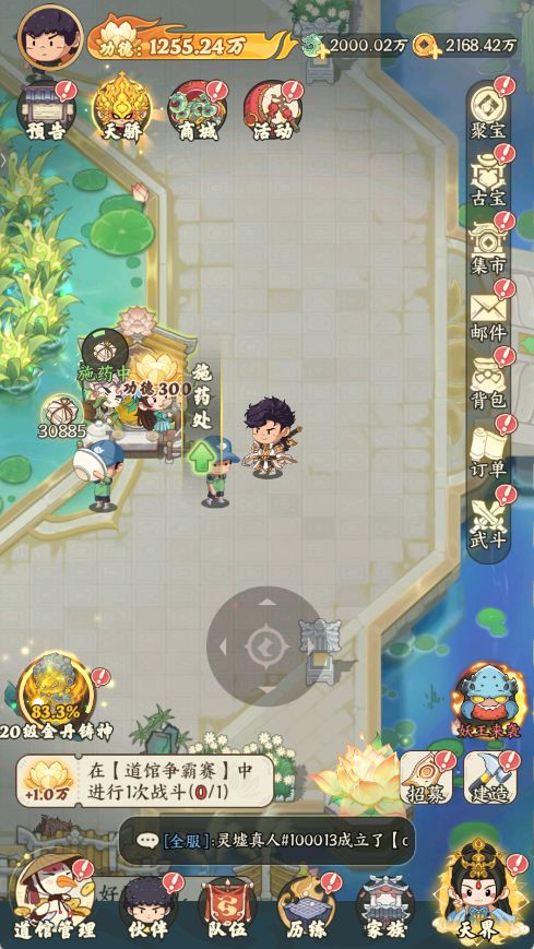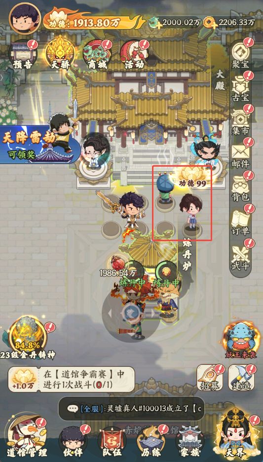 馆主可以通过升级道馆内的建筑获取大量功德哦。