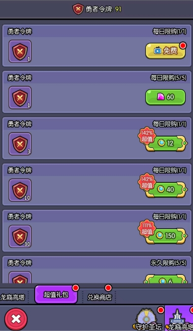 光明高塔(推荐度4星):氪金点:通行证。非常推荐购买98的通行证,可以让你前期就通关高塔拿到名次奖励,而且能获得不少升星石,相对氪金获得升星石最有性价比的获得渠道。