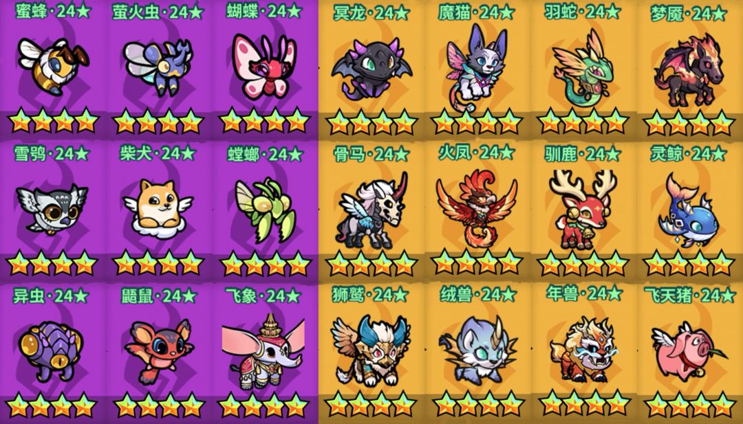 总结:紫色宠物中就基本蜜蜂和飞象在中后期还有使用的,其余均冷板凳!