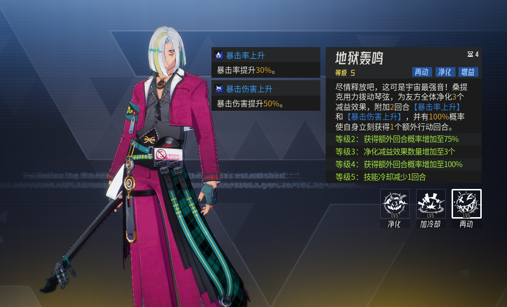 每回合首次暴击时【永久】提升友方全体5%暴击伤害,最多叠加20次。