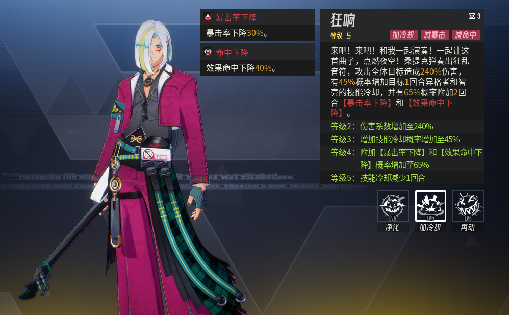 并有65%概率附加2回合【暴击率下降30%】和【效果命中下降40%】