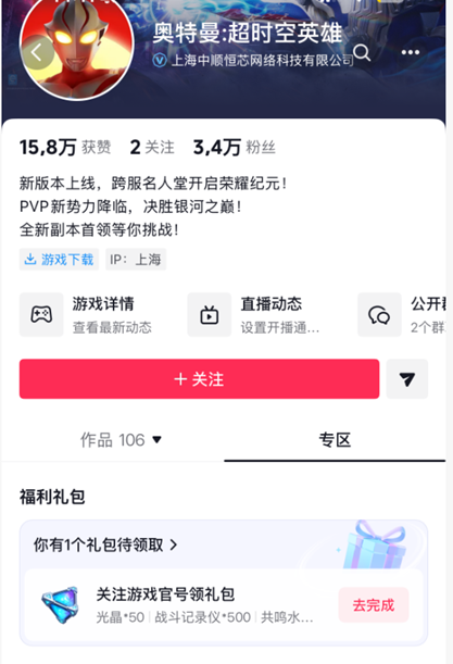 1. 关注抖音官号即可领取限量礼包,先到先得,发完即止!