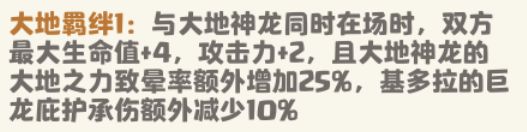 该技能是当基多拉升至4级时解锁的技能,是一个极其强力的羁绊技能,当基多拉与大地神龙同时在场时,双方便会获得大幅加强!