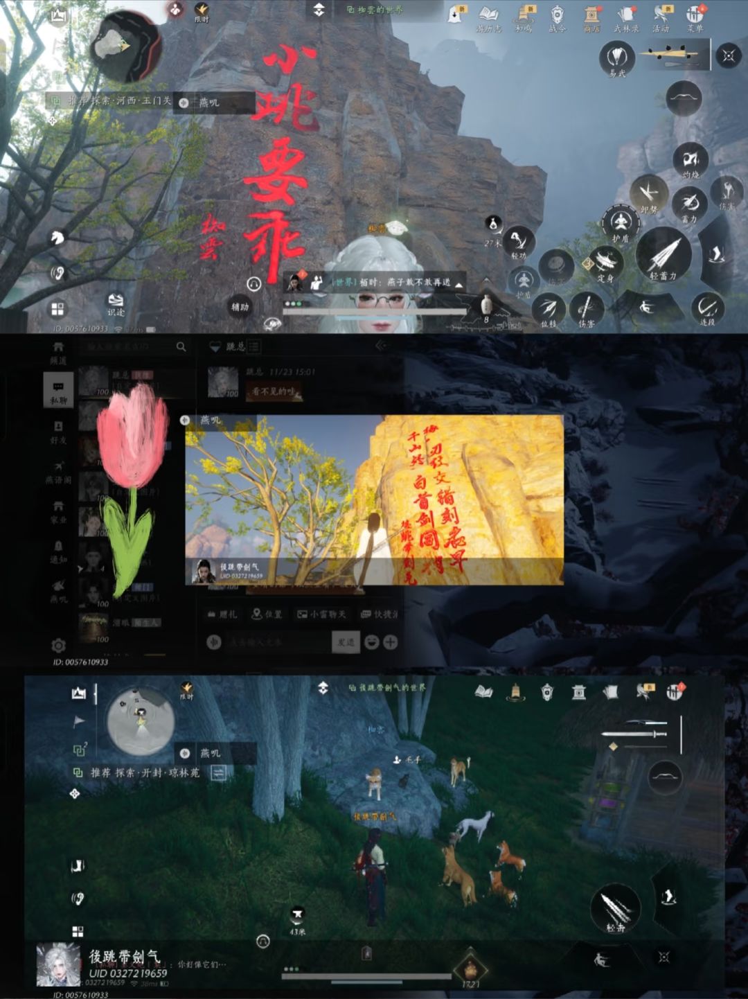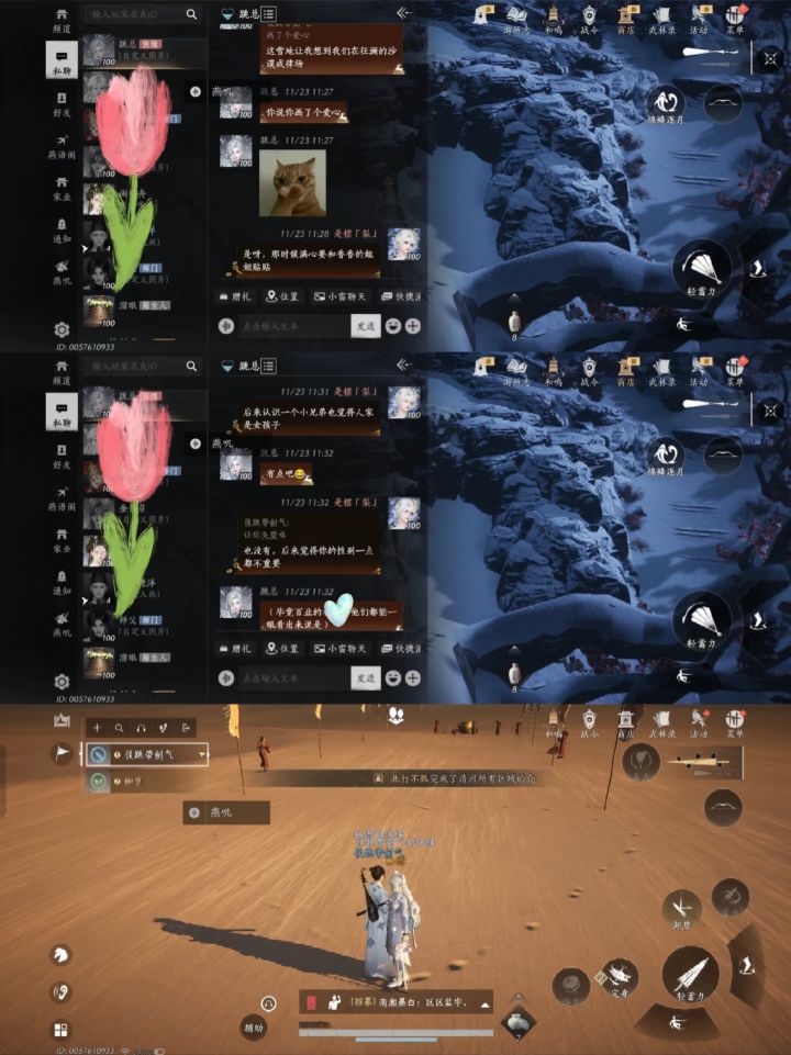 如图二,我侠缘哥一开始是侠缘姐,我在tap贴了招聘广告,她一句“莫辜负”从一众萌妹子里脱颖而出让我这个在游戏里有“性别认知障碍”的人叫了他20多天宝宝还没轻没重做了很多事(虽然现在熟了之后干的好像更多了,但是我有收敛我发誓),沙漠戒律场我记得很清楚,她本来都出去了,我说很适合画爱心,快进来我画给你看,硬生生又给她叫回来,那会我觉得女孩子真是天使就觉得超有耐心,导致后来发现是男孩子我真的别扭了好几天,我记得超清楚那天刚好要去看电影,这件事发生后我一整晚都很焦虑,焦虑到胃疼,浪浪山发生了啥完全没记住。好几次小伙子拉着我就要去斩缘,我在家业抱着柱子让他等一下...还有很多很好玩的事就不细说了(比如五子棋他不放水我绝对不可能赢为此我用了Ai发现更累了因为最后都是输,比如跳棋两个人都看脸无论谁赢了都会商业互吹对方放水,比如相扑他好像总有很多新战术虽然没有我的套路多,给我一个过肩摔会傻乎乎的高兴。帮我暴揍npc,帮我找仇杀“理论”,陪超犟的我翻遍整个菩提苦海找最后一个宝箱,一遍又一遍,还有找歌😂)