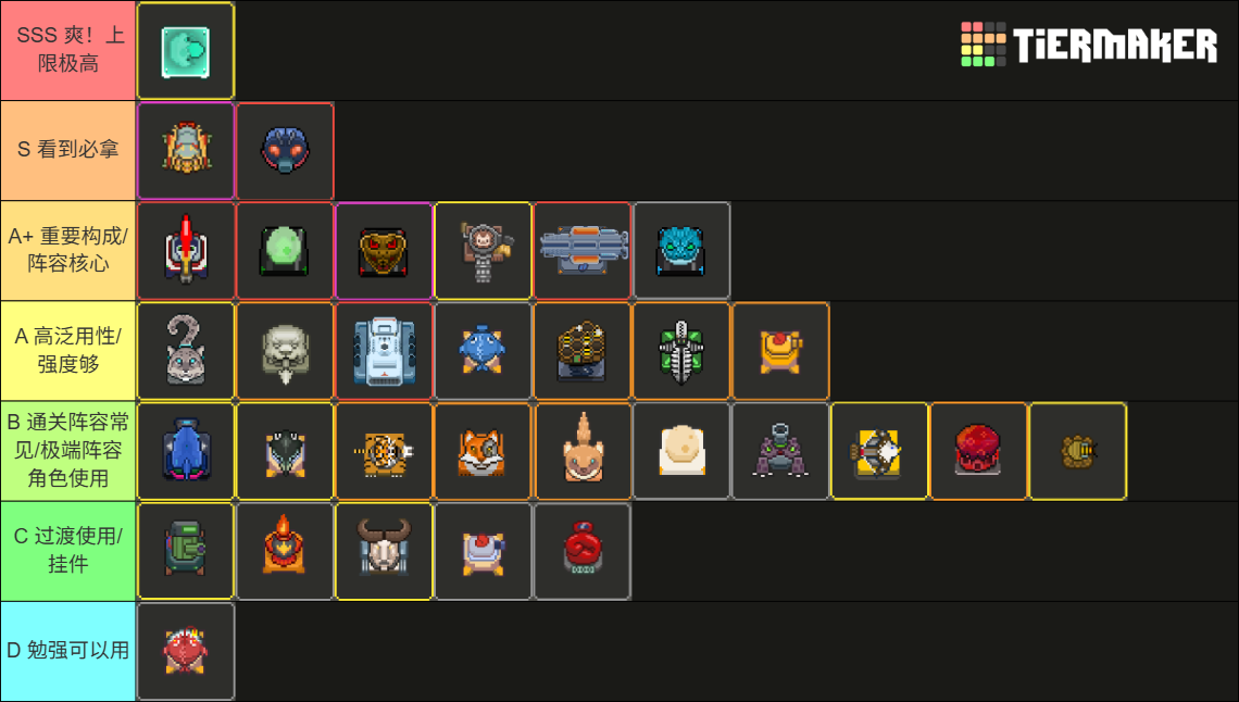 S:成形爽度高,强度高,泛用性高,拿到的话,通关率高