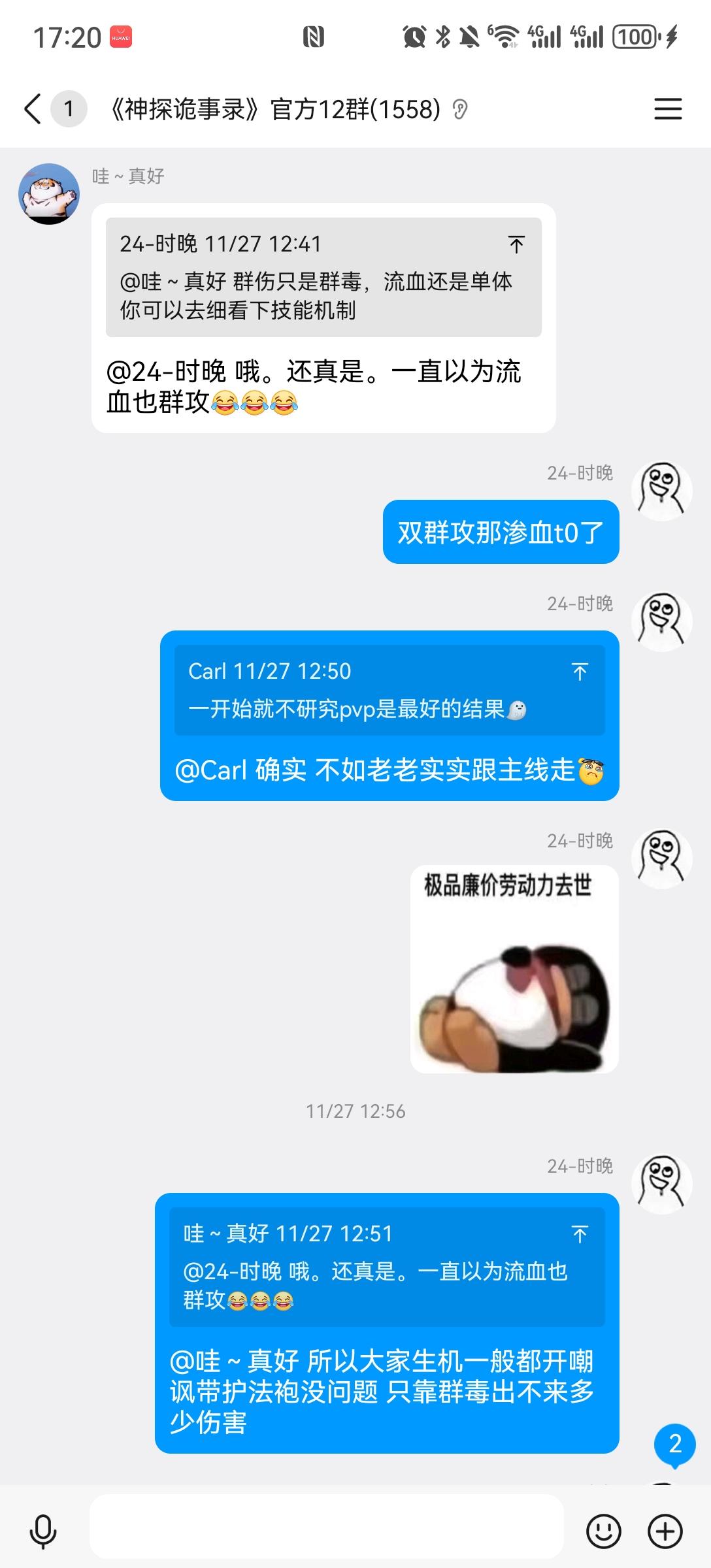 本来官服12群大家在讨论一毛不拔的官方突发福利,这哥们直接维护上了,还能说出游戏公司是玩家爹妈你玩游戏是花官方钱的逆天发言,骂玩家是白眼狼。 后面想起来他是神探官方2群的群管理 那怪不得 为了一月2k银子无脑维护的。