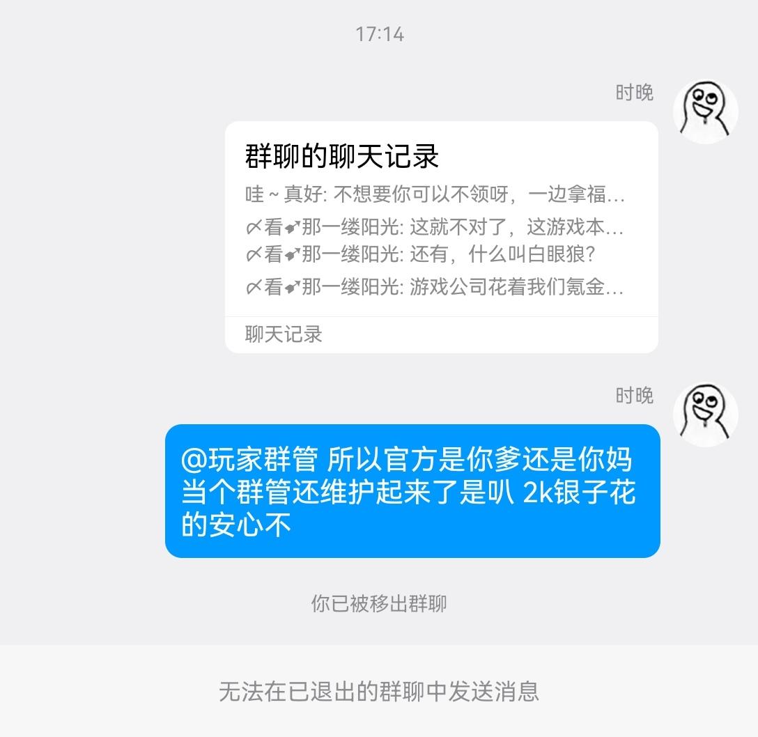记得之前的群管理是游戏出现大型bug后能跟官方力争给全服发红令的,现在这是什么。不知道现在管理工资是不是还是2k银子每月 就算给rmb为了维护官方利益也能理解 但无脑维护就是蠢了,刚当上管理员没几天就开始爆典后面能干什么我不敢想。玩这么多游戏这么蠢的官群管理还是头一回见