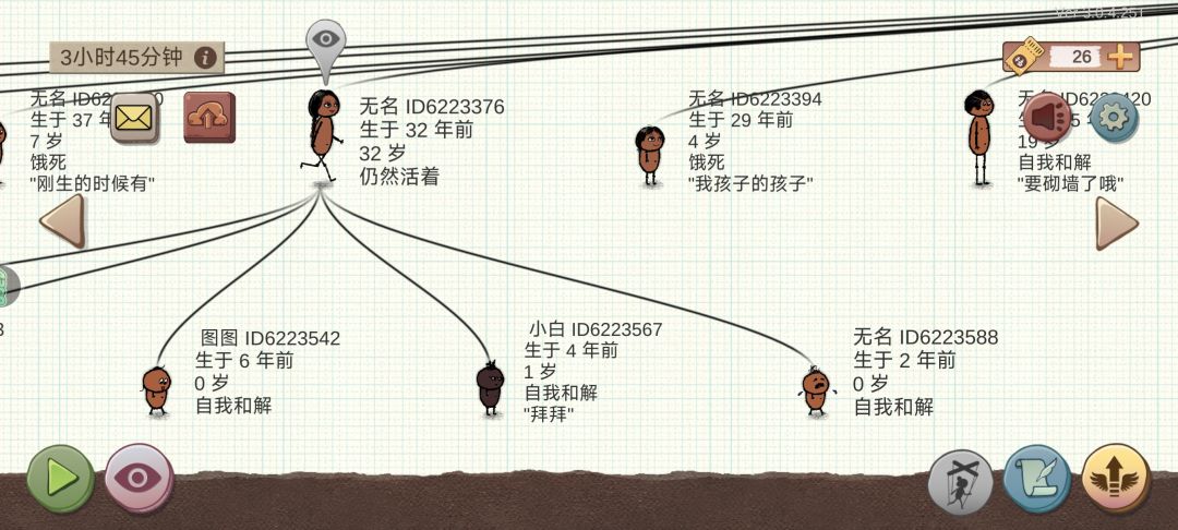 我是上官二玉,生我的是坦格利安宜,她挂机了,养我的是上官小小,所以她是我娘。我生活的地方有祖先留下来的地,所以我们不怕没吃的,我从娘那里学了收菜。后来我娘有了自己的孩子,我就自己生活了。突然有一天,我找不到娘了,发现她死了。我长大了,也有了孩子,(不知道为什么取不了名字)第一个养下去的是大宝,他不会玩,但我跟他说,我会养他,后来我生了女儿二宝,他也不会玩,我教他吃饭。但是大宝忘记吃饭饿死了,还好我又把他生下来了,可惜在我生三宝的时候,他跑没了,所以我对二宝三宝四宝说,不会玩就不要乱跑,待在娘身边。三宝说他会玩,他长大后就走了,四宝也忘记吃饭死了。二宝生孩子了,但是都过一会就走了。我也老死了