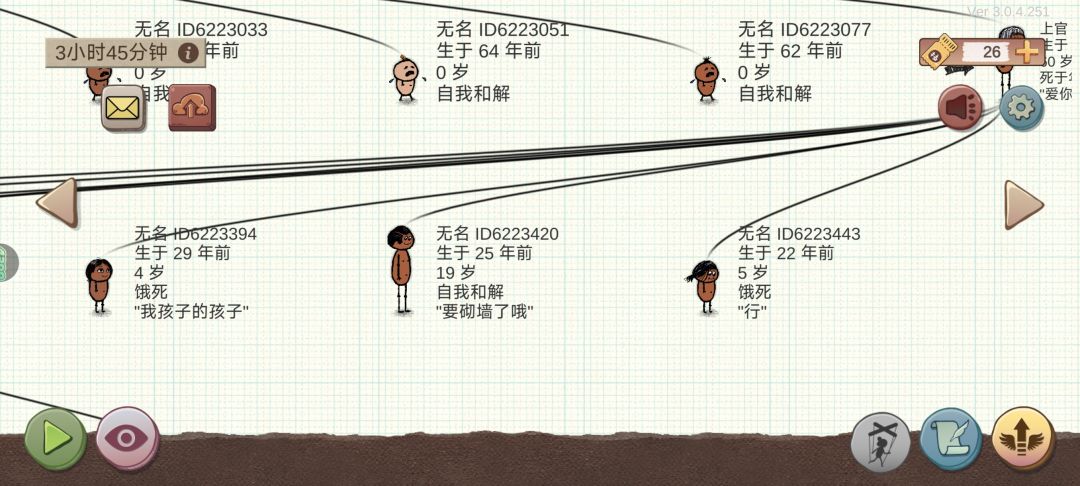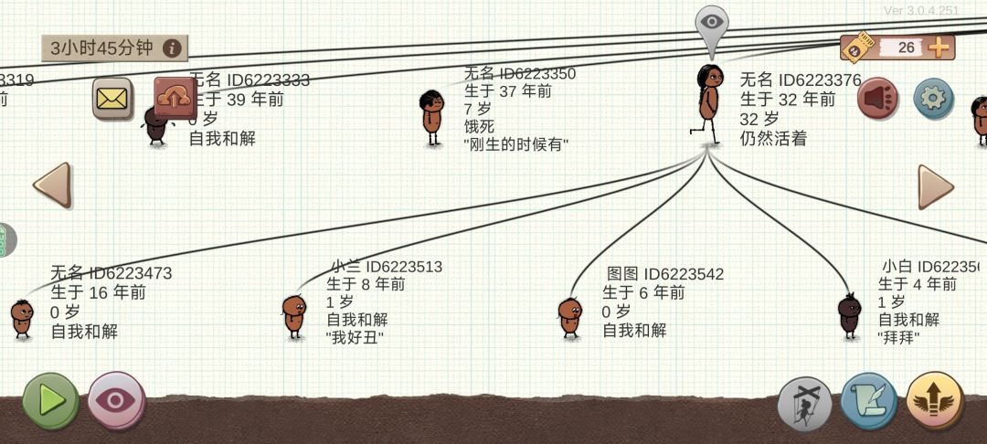 我是上官二玉,生我的是坦格利安宜,她挂机了,养我的是上官小小,所以她是我娘。我生活的地方有祖先留下来的地,所以我们不怕没吃的,我从娘那里学了收菜。后来我娘有了自己的孩子,我就自己生活了。突然有一天,我找不到娘了,发现她死了。我长大了,也有了孩子,(不知道为什么取不了名字)第一个养下去的是大宝,他不会玩,但我跟他说,我会养他,后来我生了女儿二宝,他也不会玩,我教他吃饭。但是大宝忘记吃饭饿死了,还好我又把他生下来了,可惜在我生三宝的时候,他跑没了,所以我对二宝三宝四宝说,不会玩就不要乱跑,待在娘身边。三宝说他会玩,他长大后就走了,四宝也忘记吃饭死了。二宝生孩子了,但是都过一会就走了。我也老死了