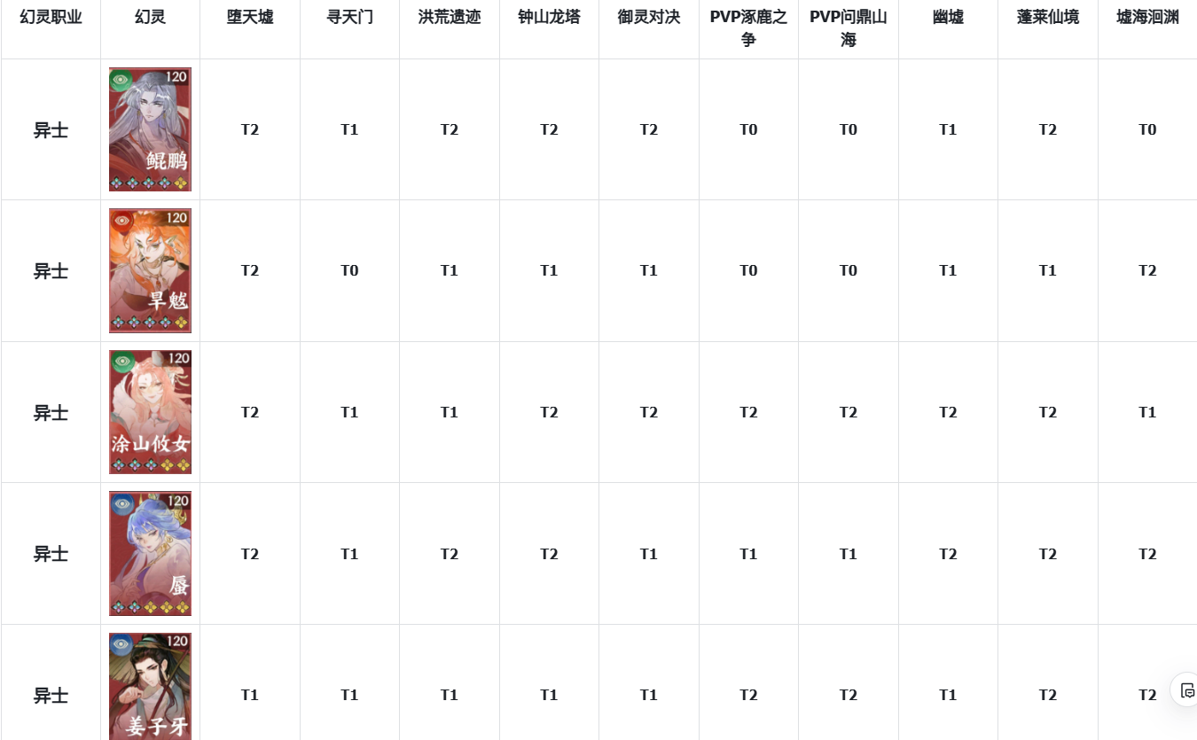 正文:这期将公布霸魁 异士 素问幻灵的强度榜单
