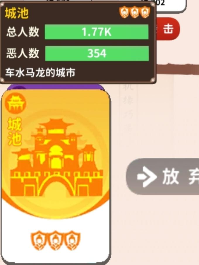 (注:村庄有0~1个守卫者,村镇有1~2个守卫者,城池有2~3个守卫者,皇城有2~3个守卫者。)