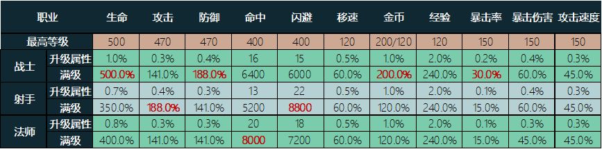 战士:以生命为主,防御适当升级,如果用闪避锤吹,前期以闪避为第一优先。如果用输出乔、光刺、莎拉等战士主C,攻击/攻速/暴击(武器有暴击词条后)均衡升级,金币移速建议满。