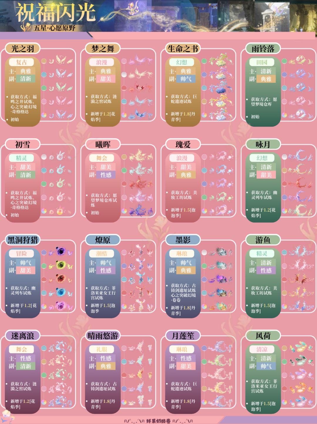 也汇总了下祝福闪光的属性、风格、对应试炼以及更新时间。