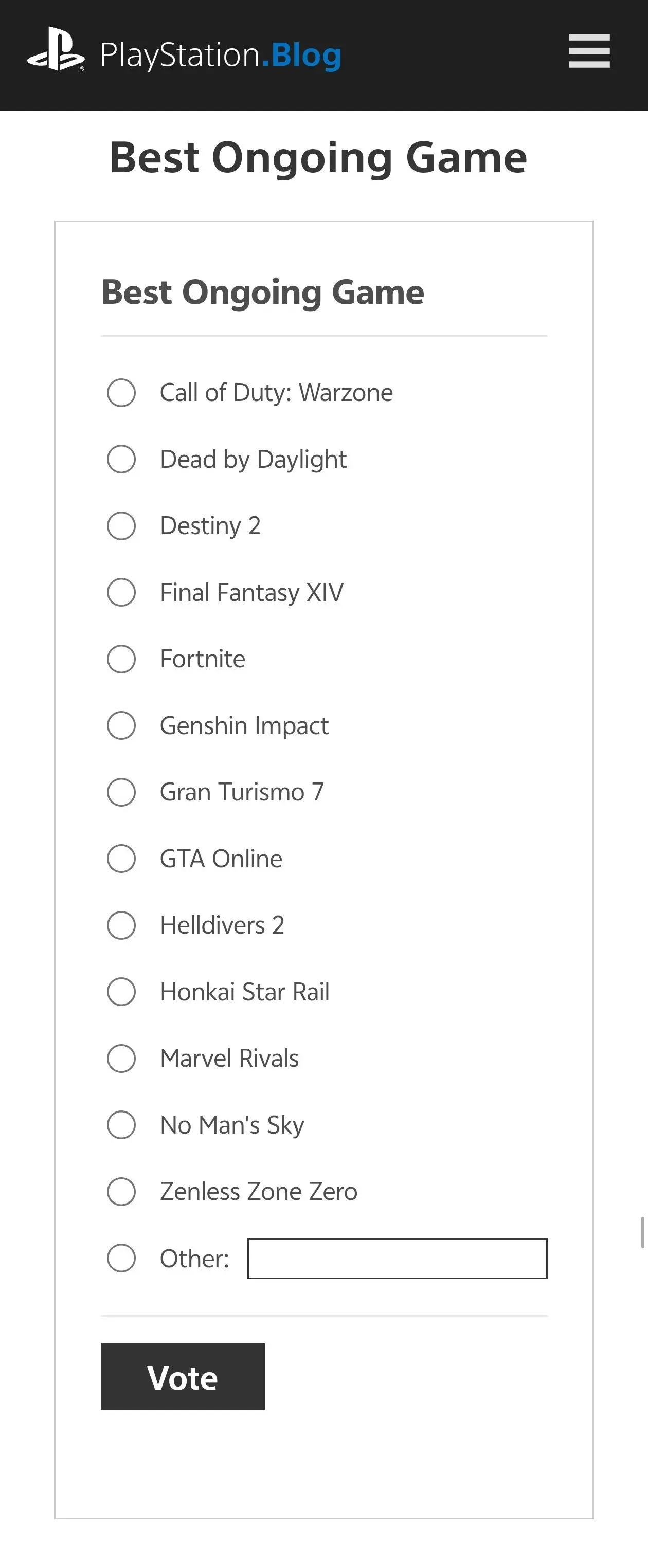 此次米哈游三姐妹的集体亮相,成为本届评选中的一大看点,也再次印证了米哈游在PlayStation平台持续运营方面的卓越表现与玩家认可度,投票通道将于北京时间12月9日15:59关闭,最终结果完全由全球玩家投票决定