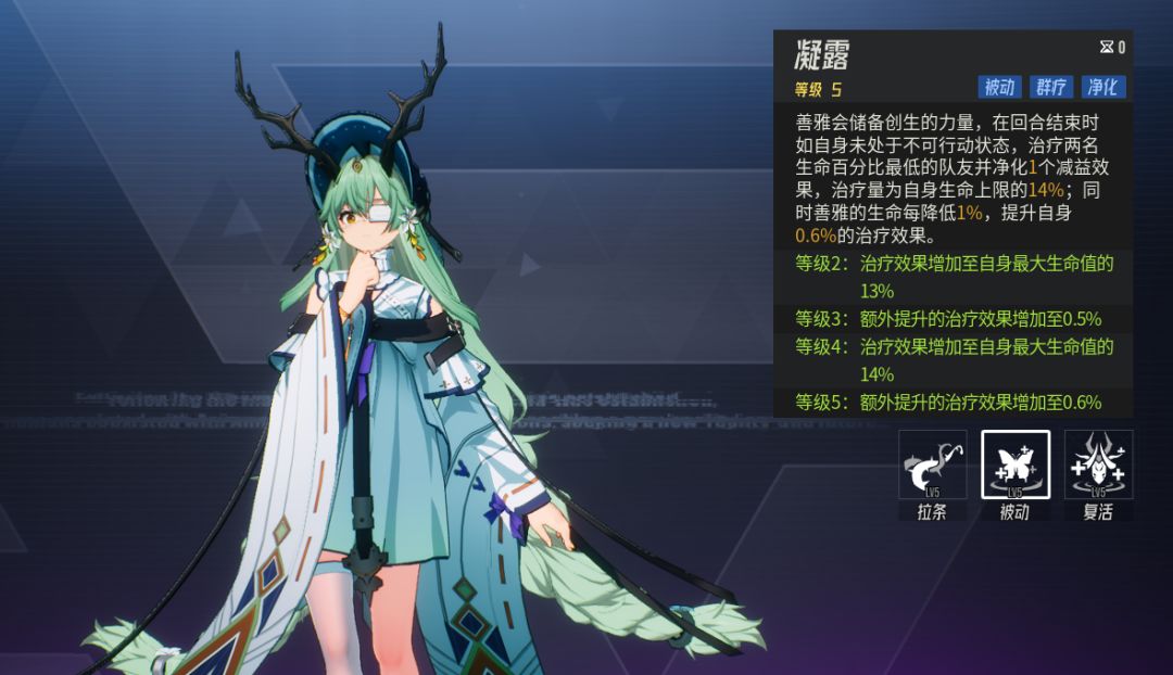 自身生命每降低1%,提升自身0.6%➡️0.8%治疗效果