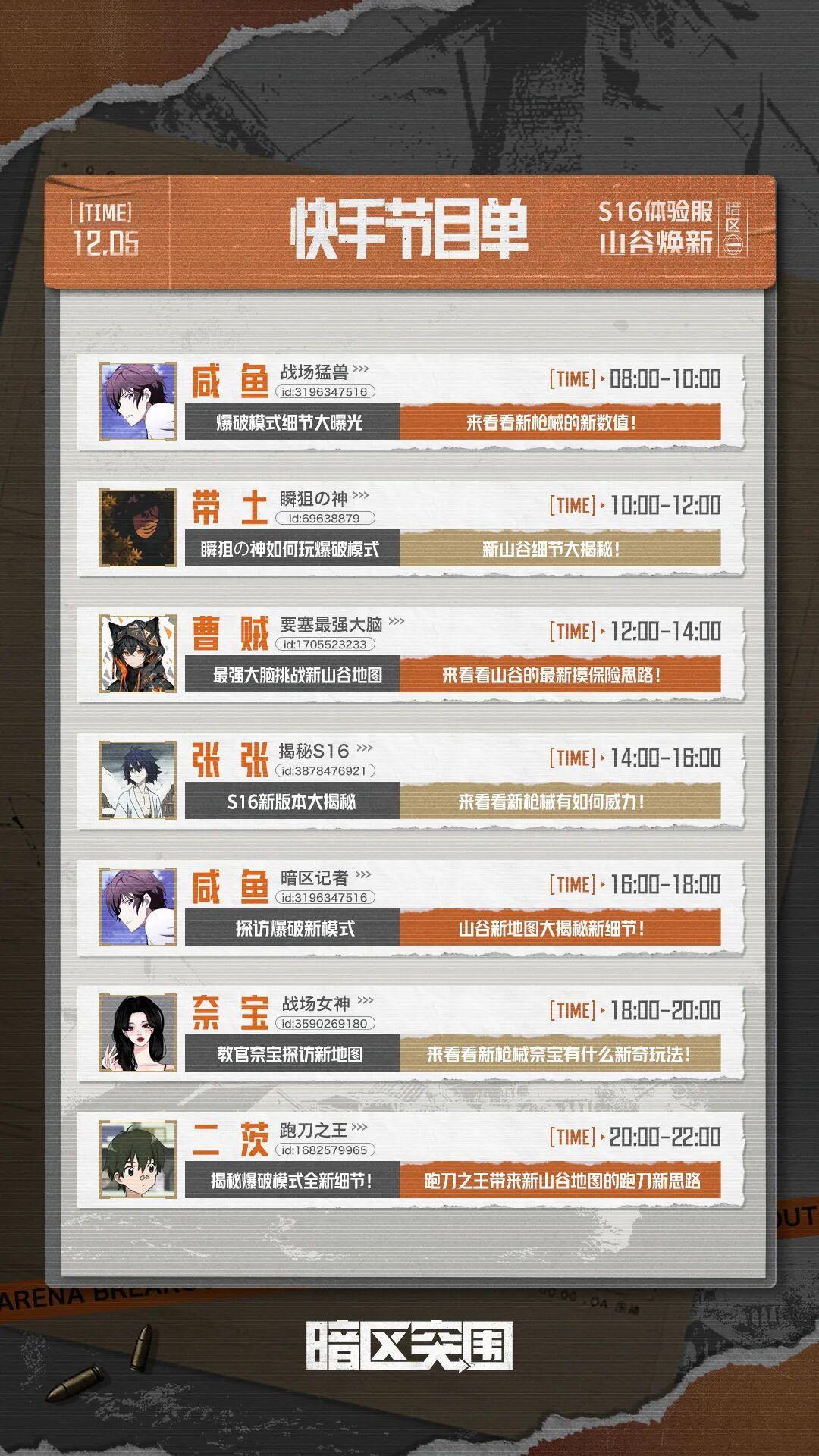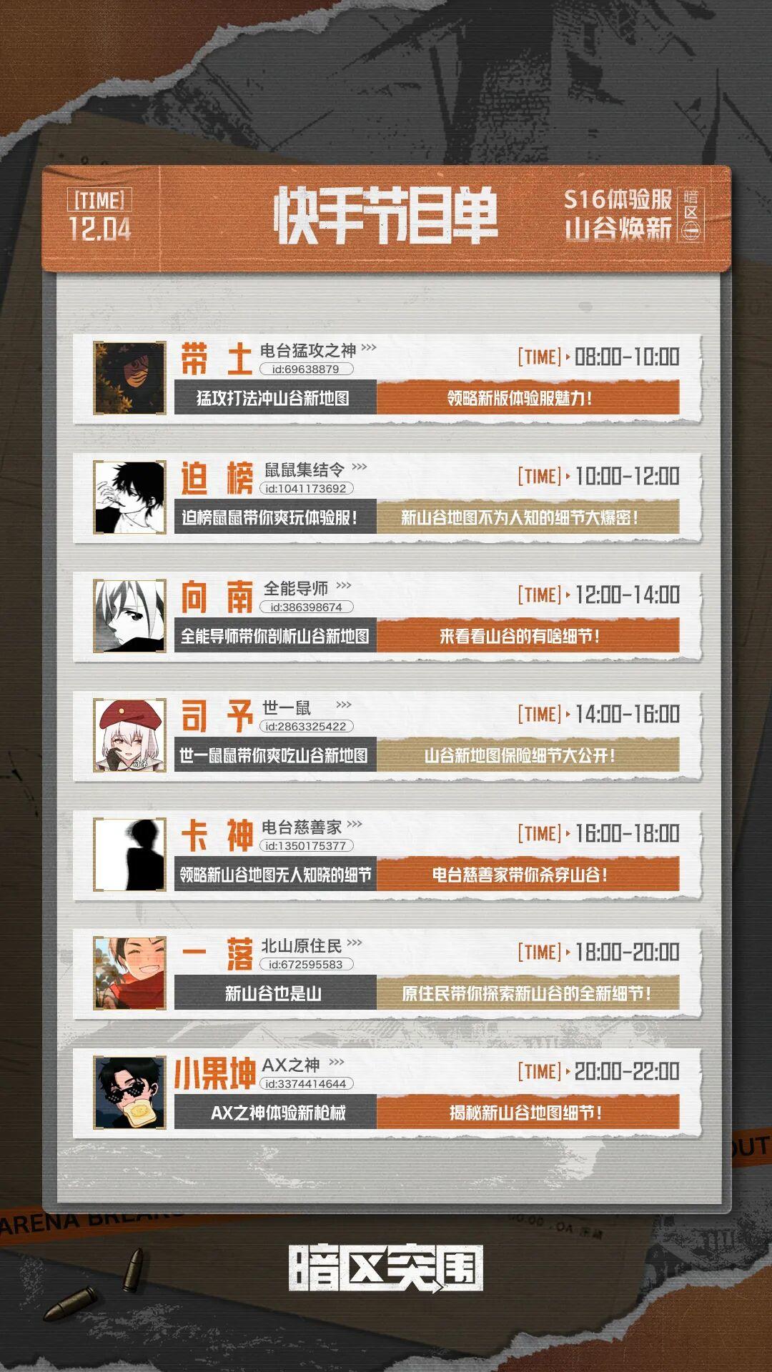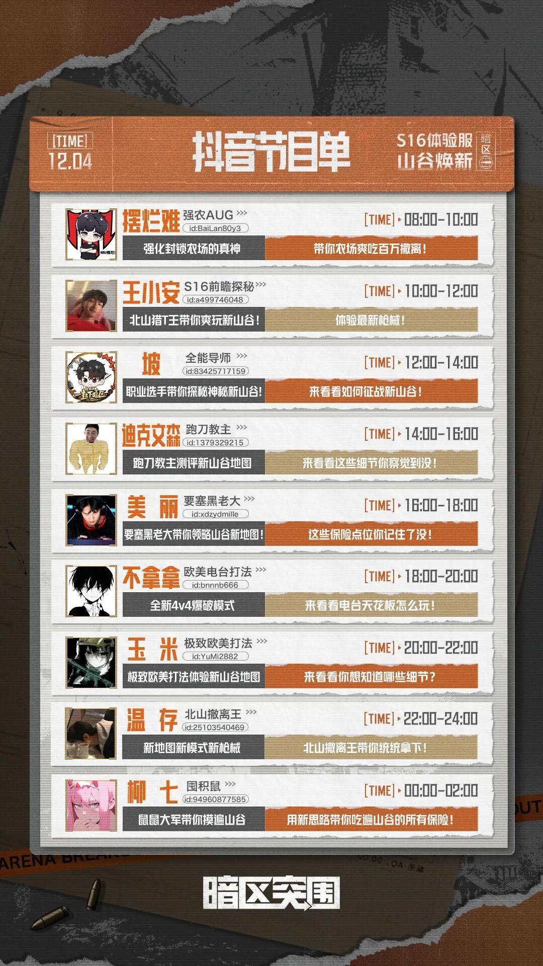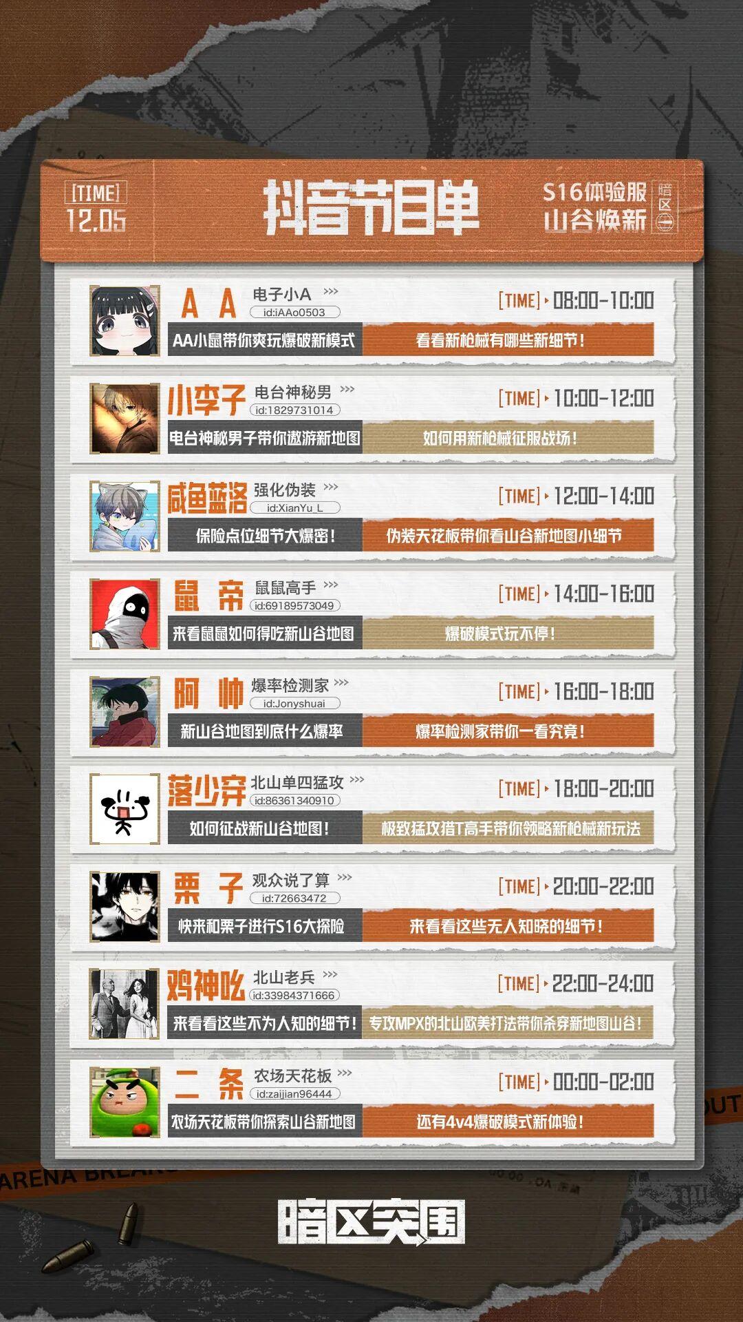 主播们带你爽玩体验服,勇闯山谷新地图!温存、鸡神吆、王小安、落少穿惊喜联动,勇闯爆破!来看看会摩擦出什么样的火花吧~锁定节目单,带你揭秘S16整个体验服的全新情报!